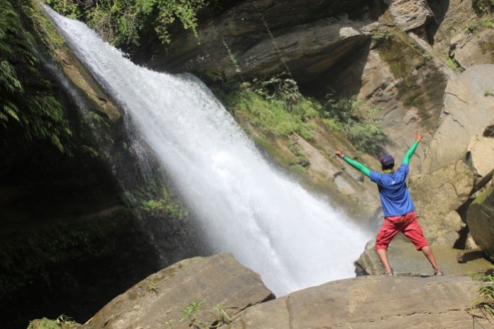 গাইড জানালো পিচ্ছিল এই পাথুরে ঢাল পেরিয়ে ডানে খাড়া পাহাড়েই আমাদের পথ। মাঝে রয়েছে গভীর খাদ, লাফিয়ে পেরোলেই তবে ওপারে যাওয়া সম্ভব। অতঃপর সব বাধা অতিক্রম করে একে একে সবাই পাহাড়ে উঠে গেলাম। কিছুদূর যেতেই দেখা গেল নামার পথ এতটাই খাড়া আর পিচ্ছিল যে আমাদের দলনেতা সবার সুবিধার জন্যে দড়ি বেঁধে দিয়েছেন। দড়ি বেয়ে নেমে কিছুদূর ঢাল পেরোনোর আগেই একি শুনি! নীরবতা খান খান করা পানির তীব্র গর্জন। একটু আগেও বুঝিনি ঝর্ণার এত কাছে বসে আছি, পাহাড়ের দেয়াল তাকে সুচতুরভাবে আড়াল রেখেছে। প্রবল শক্তি নিয়ে পাথরের বুকে আছড়ে পড়া এই সুউচ্চ জলরাশির নাম তিনাপ সাইতার।