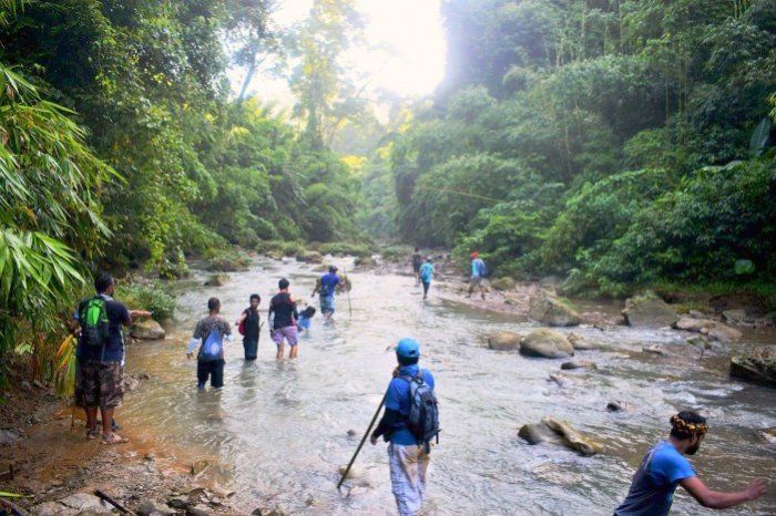 রাতটা চায়ের দোকানে আড্ডা, খেলা আর তারা গুনে শেষ হল। সাথে ছিল বিশেষ আমেজ হিসেবে তক্ষকের ডাক। পাহাড়ি রাত বলতে যা বোঝায়, সোলারের আলো আর অল্প একটু পানির ব্যবস্থা থাকায় হয়তো পুরোপুরি মনের আশ মেটে না। কিন্তু আমরা শহুরে প্রকৃতিপ্রেমীরা এতটুকু সুযোগ সুবিধা অত্যন্ত কৃতজ্ঞতার সাথেই গ্রহণ করেছি। মোটামুটি ভালো একটা ঘুমের শেষে বেশ ফুরফুরে ভাবেই শুরু হল নতুন দিনের যাত্রা। লক্ষ্য বহুদিনের আরাধ্য তিনাপ সাইতার। ঝর্ণা প্রেমীদের কাছে সুপরিচিত একটি নাম। পাড়া পেরিয়ে কিছুদূর গেলেই সামনের পথ দু’ভাগ হয়ে নিচের দিকে নেমে গেছে। বামের রাস্তা দিয়ে কিছু দূর নামতেই হাতের বাঁয়ে টেবিল পাহাড়ের সম্পূর্ণ রেঞ্জ চোখে পড়ে। নিচে তাকালে পাহাড়ের ভাঁজে ভাঁজে দুধসাদা মেঘের পরত। এরকম মনোমুগ্ধকর দৃশ্য দেখতে দেখতে শুরু হয়ে গেল মাটির ঢালু রাস্তা। এবার পথচলা তেমন সহজ নয়। তবুও উত্তেজনায় সবারই বেশ চটপট পা চলছে। অনেকটা সময় এভাবে সোজা নিচের দিকে হেঁটে আর মাঝে ছোট-খাটো কিছু ছড়া আর ঝিরি পেরিয়ে অবশেষে যখন পাহাড় থেকে নেমে দেখলাম বেশ বড়সড় পাইন্দু খাল সামনে অপেক্ষা করে আছে। সবাই যেন একটু হাঁফ ছেড়ে বাঁচলাম। পানির স্রোতে গা এলিয়ে সব ক্লান্তি ভাসিয়ে দিলাম। কিন্তু এখন বিশ্রামের সময় কই? আবারও সদলবলে হাঁটা শুরু, তবে এবার পাহাড় নয়, ঝিরি পথে।